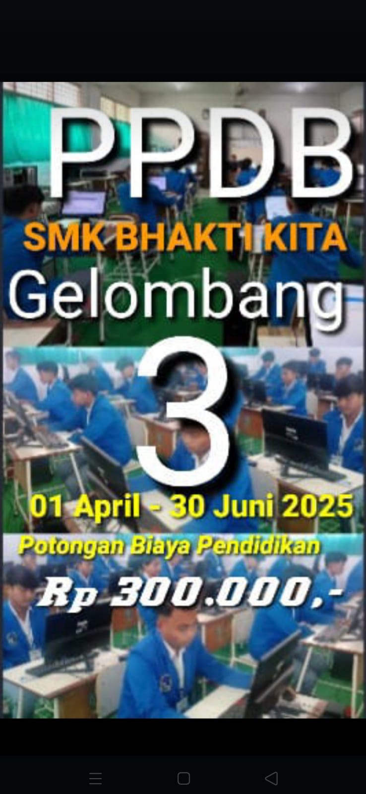 Sekolah Bakti Kita mengundang para orang tua untuk mempercayakan pendidikan putra-putrinya di lembaga ini. Informasi lebih lanjut mengenai pendaftaran dapat diperoleh langsung di sekolah atau melalui kontak resmi panitia PPDB.